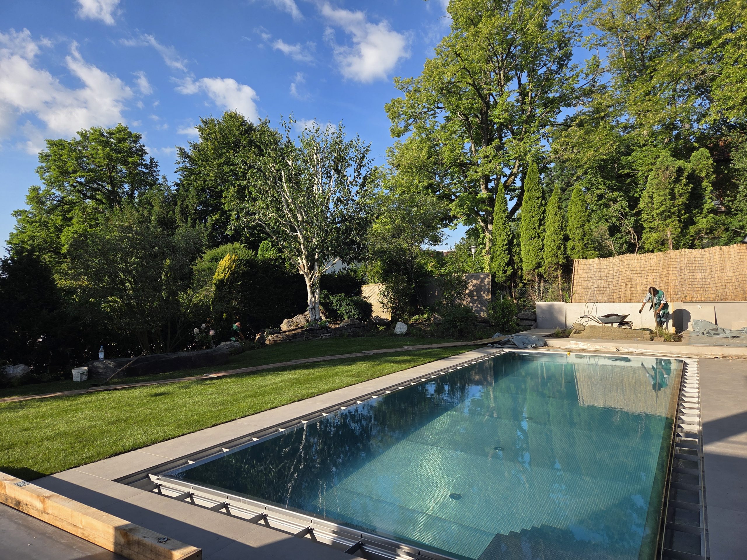 Neugestaltung eines Privatgartens mit Pool und Poolhaus |