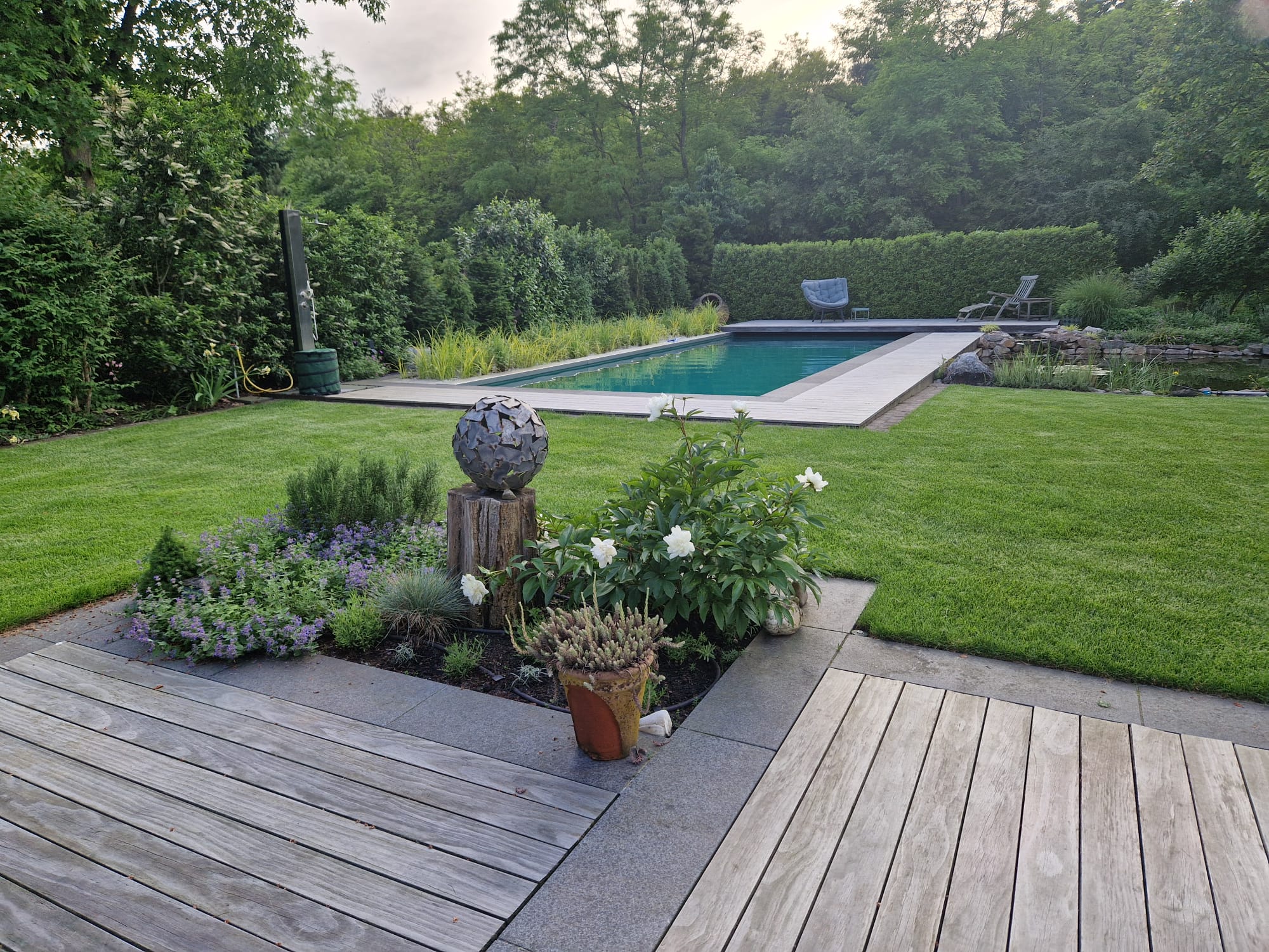 Neugestaltung eines Privatgartens mit Swimming-Pond |